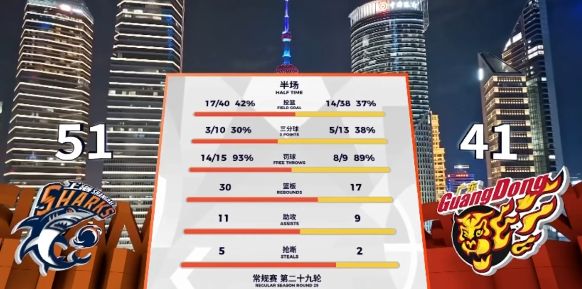 偰李永炜登场后也是手感滚烫,直接进入得分模式,空位三分,洞穿篮筐。对手方面,萨林杰三分命中,帮助广东队将分差控制在10分。