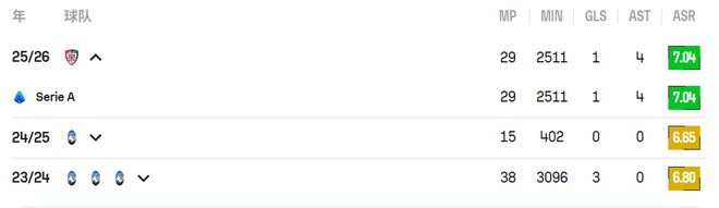 帕莱斯特拉的成长轨迹很稳。他出自亚特兰大青训体系,一级一级跃升个人基本功扎实,持久训练,堪称是靠谱的提升,不存在虚假的问题。在加斯佩里尼手下,他拿到职业比赛的经验,慢慢的走向前台。2024年夏天,为了获得更多出场时间,他被租借至卡利亚里。