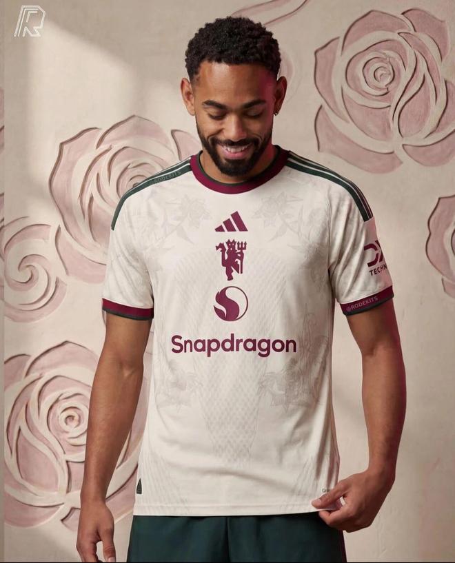 曼联下赛季第三球衣则以米白色球衣为底,饰以兰开夏郡玫瑰图案暗纹,并点缀深绿色和栗色。