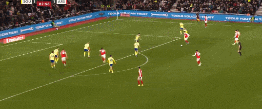 第84分钟,阿森纳前场打出配合,马丁内利一脚抽射偏出球门。