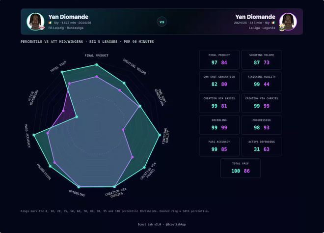 迪奥曼德代表的是另一种类型:更年轻、资历尚浅,但在攻防转换阶段可能更具活力。他冲击空间和在前场多个位置作战的能力,能给利物浦带来战术上的灵活性。