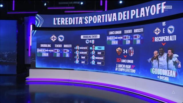 两场附加赛,意大利的对手北爱尔兰和波黑,总共尝试盘带41次,成功24次;意大利队尝试盘带27次,成功6次。