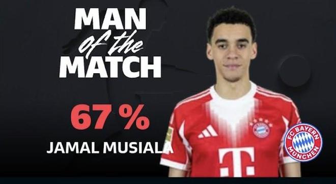 最终经过德甲官网球迷投票,穆西亚拉以67%的得票率当选全场最佳球员。