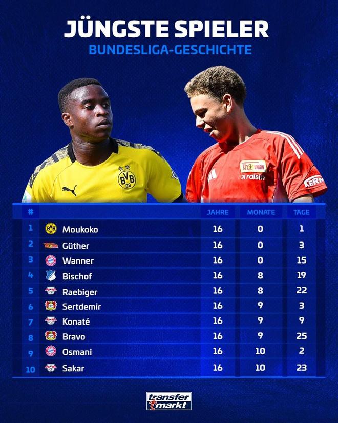 1. 穆科科(多特蒙德)16岁01天