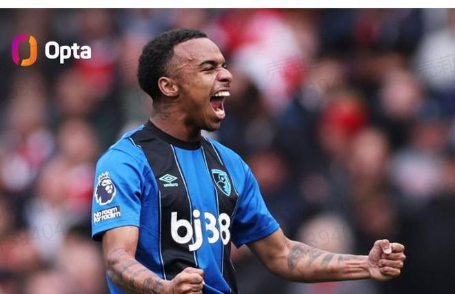 第17分钟,克鲁皮接队友传中,小角度凌空垫射破门,帮助伯恩茅斯率先打破僵局。