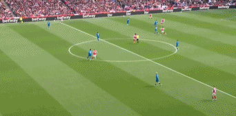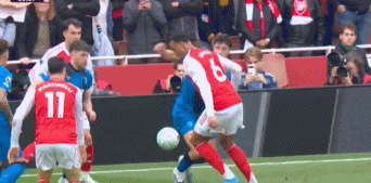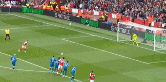 第34分钟,马杜埃凯角球传中,加布里埃尔混战当中射门,克里斯蒂手球犯规,裁判直接示意点球。