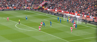 第35分钟,哲凯赖什主罚,打球门左上角,彼得罗维奇判断准确,不过力量太大鞭长莫及,阿森纳扳平,1-1!