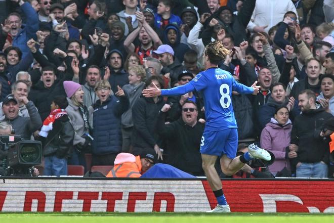 尽管半场结束前,哲凯赖什利用点球机会为阿森纳扳平了比分,阿尔特塔甚至罕见地提前作出了换人调整,但阿森纳还是不出意外地又丢球了。第74分钟,伯恩茅斯右路发动攻势,布鲁克斯斜塞,埃瓦尼尔森在身体失去平衡的情况下将球垫向中路,斯科特突入禁区后大力抽射,皮球应声入网,将整座酋长球场打进绝望的深渊。