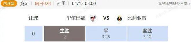 竞足 周日028 西甲 毕尔巴鄂VS比利亚雷