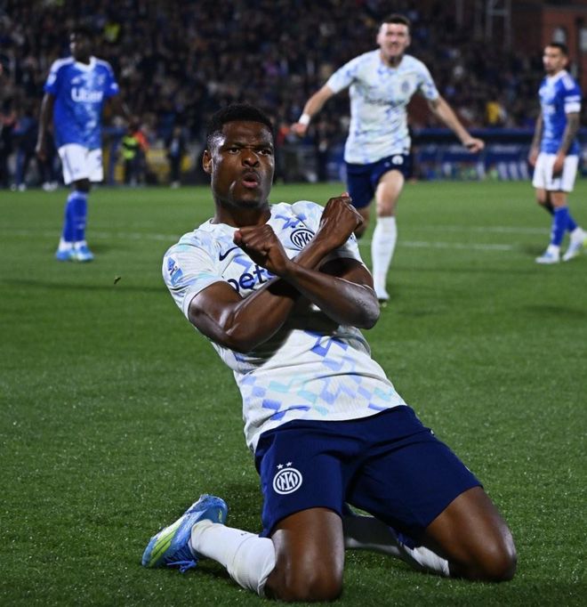 第72分钟,邓弗里斯接到队友头球摆渡,禁区抢点破门,就这样国米26分钟连扳4球,完成大逆转。