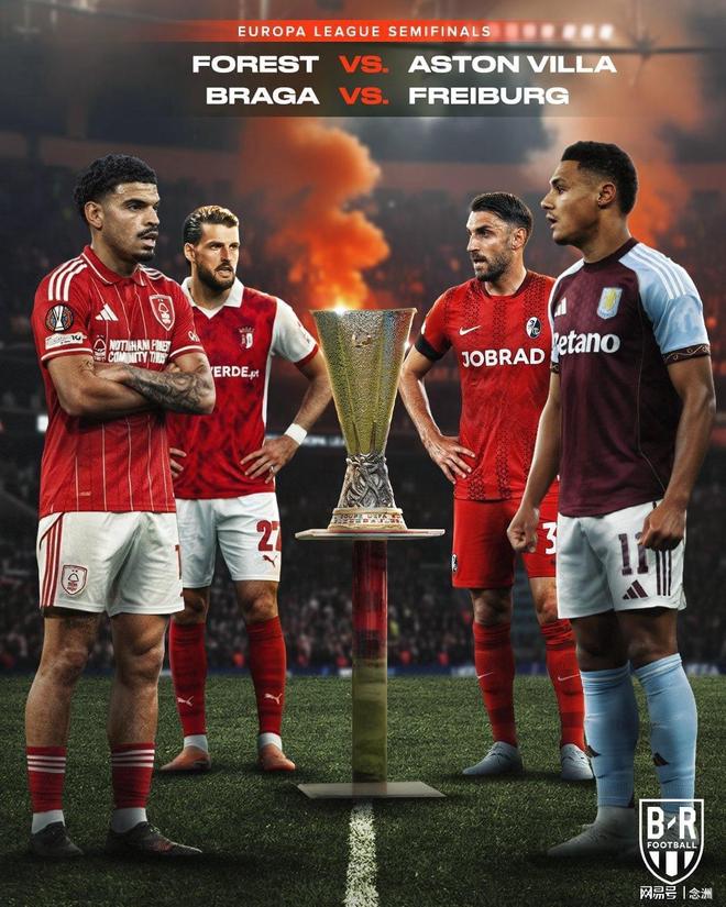 欧联杯1/4决赛次回合全部结束,四强出炉,半决赛将上演英超德比,阿斯顿维拉VS诺丁汉森林,埃梅里冲击个人第5冠,德甲弗赖堡则对阵葡超布拉加。
