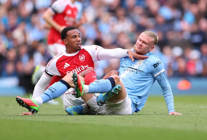 第38分钟,加布里埃尔在对抗中压倒哈兰德。