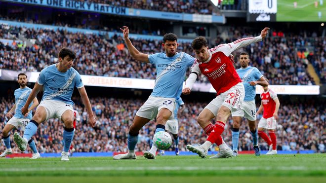 3分钟后,阿森纳的进攻制造威胁,哈弗茨的射门以及马丁内利的补射,都被曼城防线拦截。