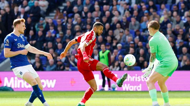 第42分钟,终于打出状态的加克波一路横向盘带,之后的劲射被皮克福德飞身托出横梁。