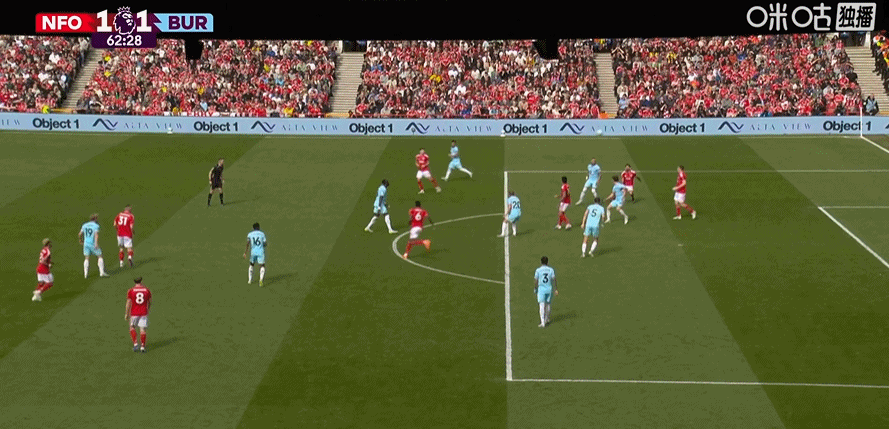 第45+2分钟,哈特曼送助攻,弗莱明左脚推射破门!伯恩利1-0