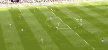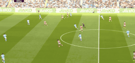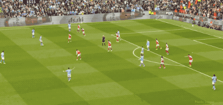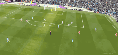 第66分钟,曼城打出快速进攻,奥莱利传球,罗德里一脚踢空,哈兰德抢在加布里埃尔之前,将球打进。