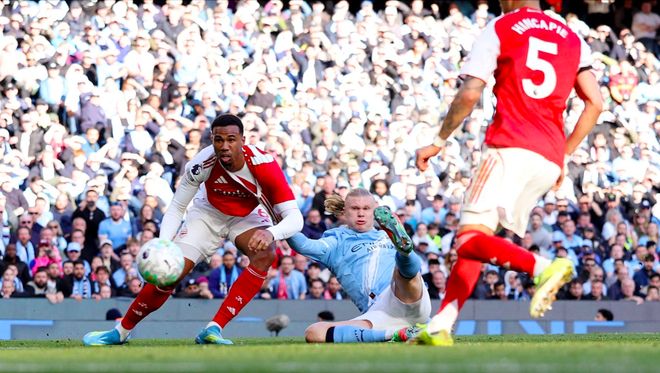 4月20日凌晨,英超第33轮天王山之战,阿森纳大战曼城。第16分钟,谢尔基一条龙打破僵局。2分钟后多纳鲁马停球太大出现超巨失误,大脚出球被哈弗茨挡进球门。第66分钟,哈兰德抢射破门。阿森纳方面,埃泽和加布里埃尔的射门先后击中立柱。