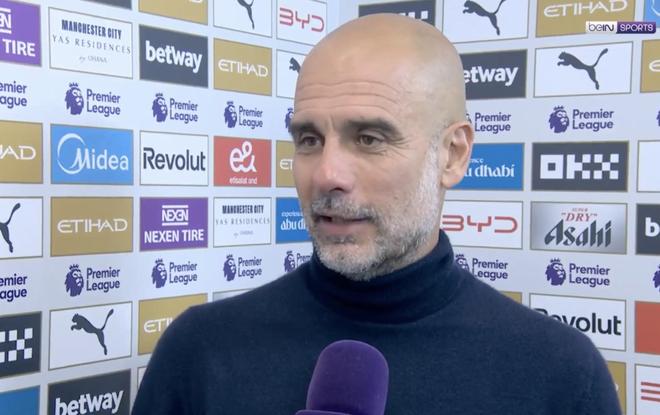 英超第33轮主场2-1击败阿森纳之后,曼城主帅瓜迪奥拉接受了拜因体育的采访。