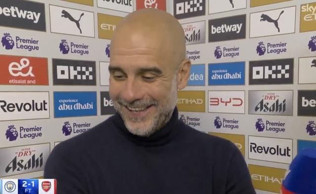 英超第33轮主场2-1击败阿森纳之后,曼城主帅瓜迪奥拉接受了天空体育的采访。