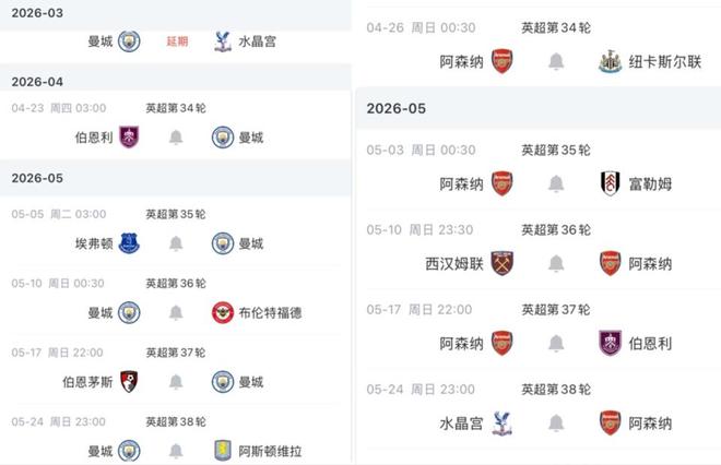 剩下的比赛,每一场都堪称生死战,无论是阿森纳能否顶住压力、重拾斗志,还是曼城能否延续势头、稳步前行,都将决定本赛季英超冠军的最终归属。这场豪门对决的终极悬念,唯有等到最后一轮比赛结束,才能正式揭晓。