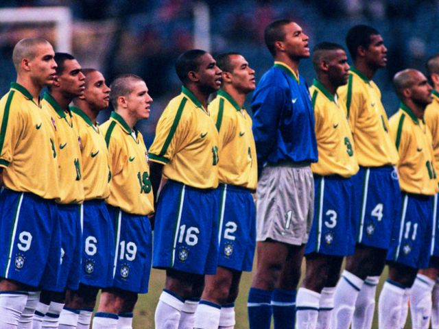 那个年代的巴西队,还没像现在这样,主力阵容几乎全被“欧洲海归”承包。在巴甲踢得好,照样能在国家队当大哥。于是,在1995年,年仅22岁的大儒尼尼奥,就迎来了自己职业生涯的第一个巅峰——他穿上了象征核心的巴西10号球衣,成为了桑巴军团的中场真核。