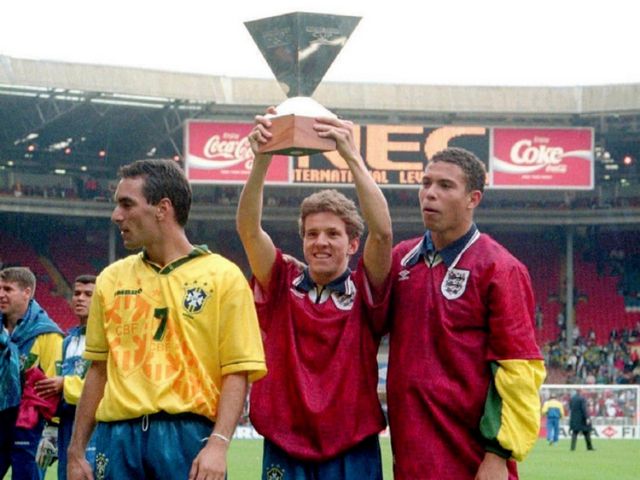 你可别以为他是纯靠运气。1995年的茵宝杯,巴西对阵英格兰,大儒尼尼奥把三狮军团那帮“糙哥”后卫们耍得团团转,不仅送出手术刀般的助攻,还用一脚石破天惊的任意球直接洞穿了希曼把守的大门。那一战,让他名扬欧洲。