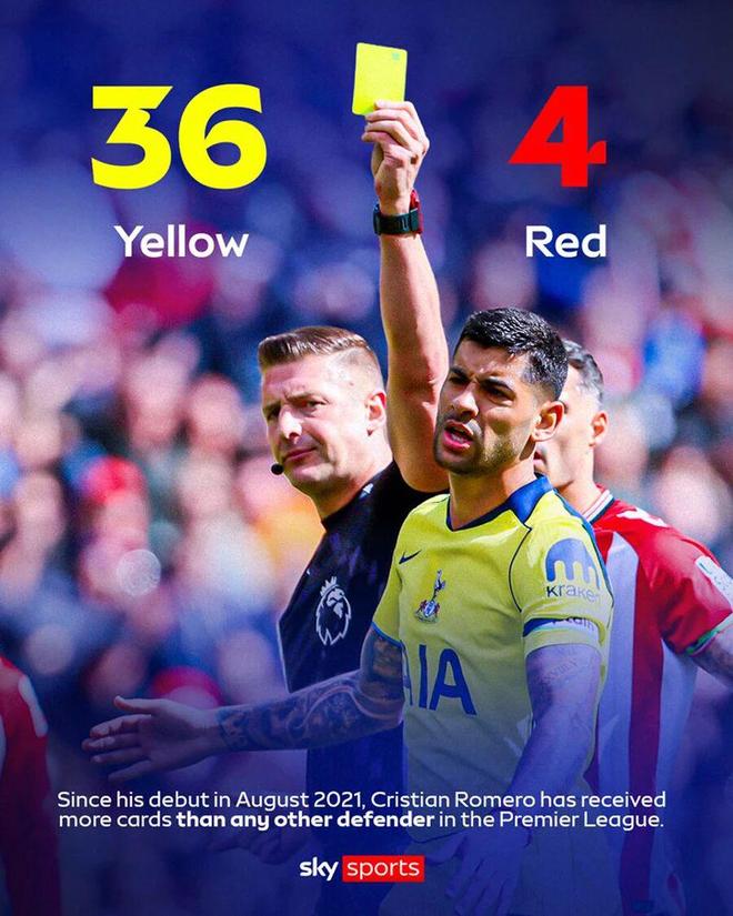 当然,罗梅罗在热刺的生涯亦并非一帆风顺。他的强悍球风存在风险,一方面也会带来伤病;另一方面,他在热刺效力期间狂拿36黄4红,本赛季他的球场纪律记录问题尤其严重,多次因为黄牌和红牌被停赛,有时导致热刺在关键时刻人手不足。