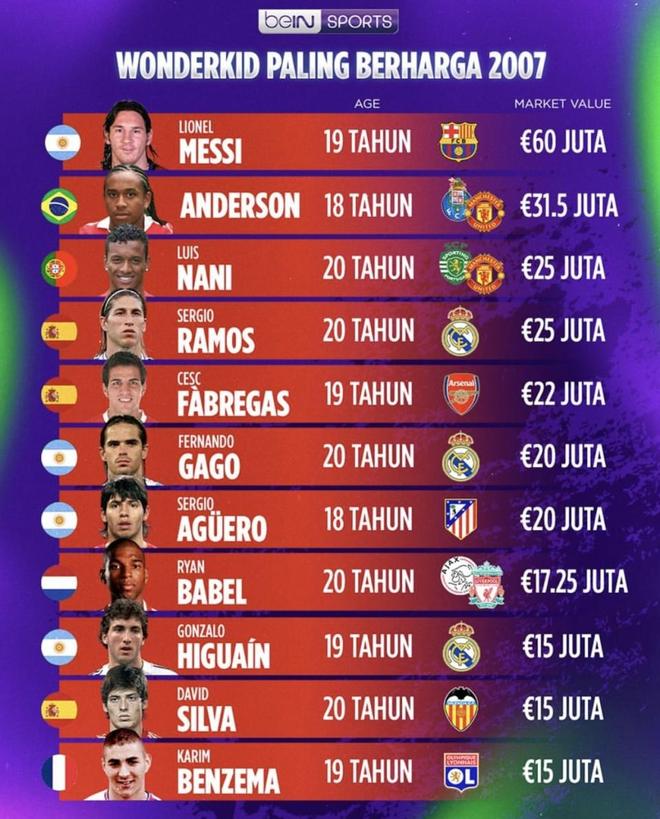 把这11人的后来发展综合来看:梅西、拉莫斯、本泽马、阿圭罗、席尔瓦、法布雷加斯、伊瓜因、纳尼,足足8人都踢出了极高水平的职业生涯;安德森、加戈、巴贝尔属于未能完全兑现天赋;真正让人严重看走眼的案例几乎没有。也就是说,2007年的这份年轻球员身价排名,命中率极其亮眼。榜单最顶端的几个人准确无误,中后段也有大批人成长为豪门绝对主力。要把年轻时的“天赋”转化为长期的“硬成绩”,难度本身就极大,而这批人做到的比例,放在足坛任何一个年份都绝对名列前茅。