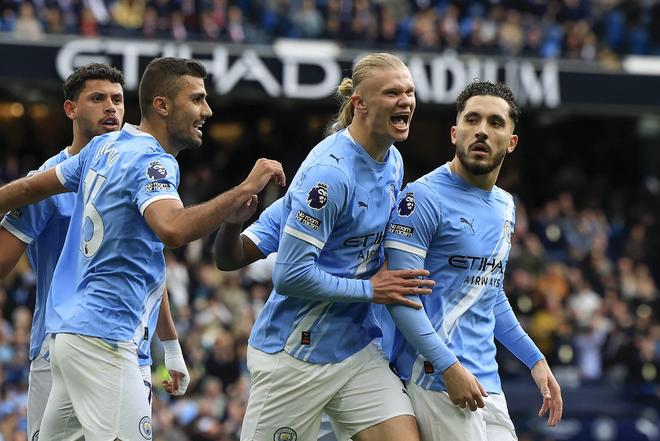 而上轮英超的天王山之战,蓝月与枪手迎来直接对话。在上半场双方各入一球的情况下,曼城全队并未受到多纳鲁马失误的影响,而是到了下半场越战越勇。在“毁灭菇”奥赖利的推进和策动下,哈兰德用一记卧射帮曼城将三分收入囊中。
