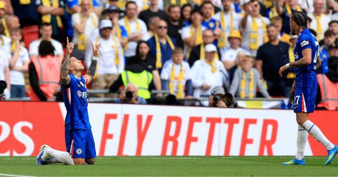 比赛第23分钟,球分到右边佩德罗·内托脚下,内托瞄着传,恩佐人到球到,一记头球干净利落地砸进网窝。就凭这一个进球,切尔西1比0淘汰了利兹联。