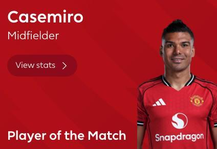 最终经过英超官网球迷投票,卡塞米罗以45%的得票率当选全场最佳球员。