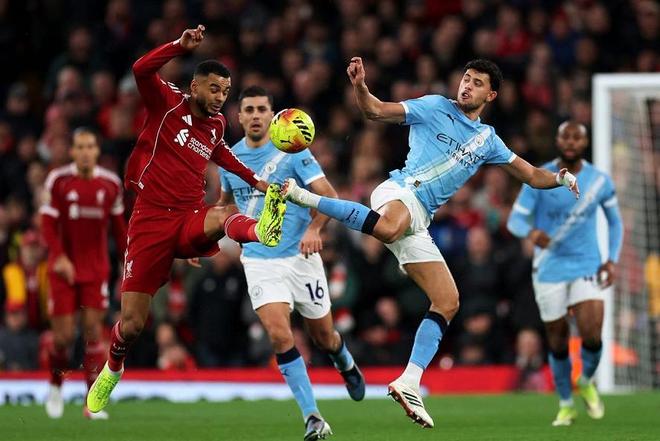 面对赛季首回合交锋,3-0击败自己的蓝月军团,渴望复仇的利物浦,在主场祭出了4231的体系,首发门将阿利森,凯尔凯兹、范迪克、科纳特和索博斯洛伊搭档四后卫,身前则是麦卡利斯特和赫拉芬贝赫组成的双后腰,加克波、维尔茨和萨拉赫在中场一字排开,单箭头则是埃基蒂克。