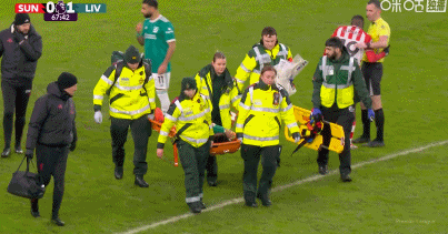 比赛中,远藤航试图解围左侧传中时,左脚被草皮绊倒,导致左踝关节严重扭伤,之后他被担架抬下球场,下场时,远藤航捂着面部,看上去受伤非常严重。
