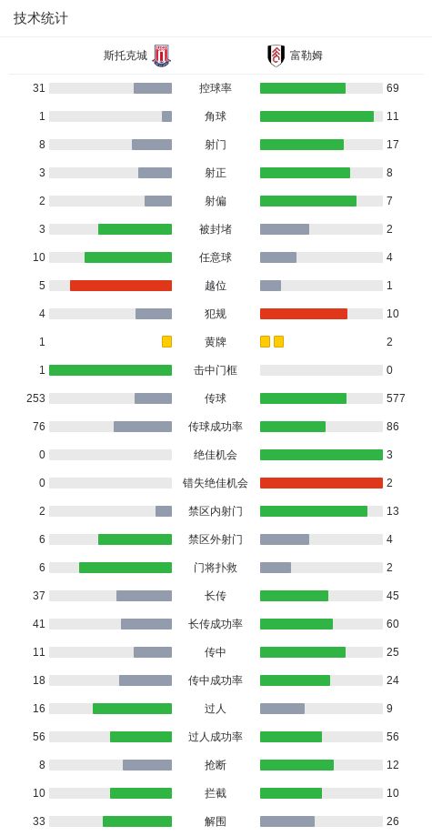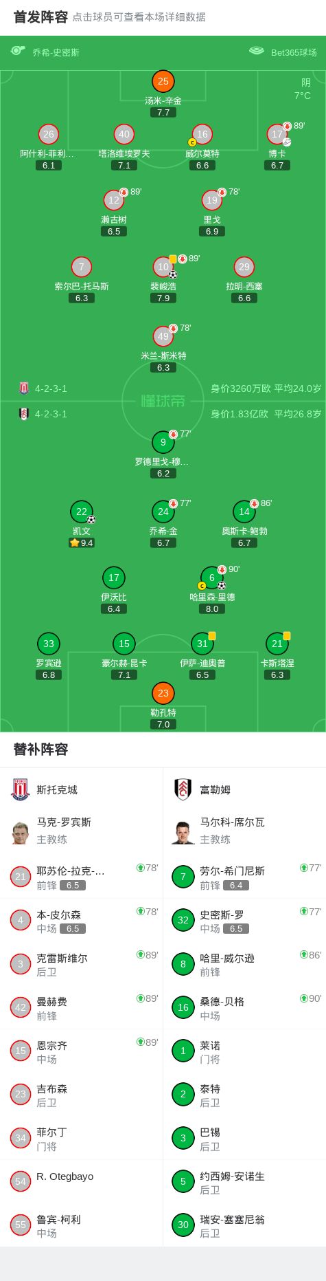 第84分钟,斯托克城后场被抢断,里德破门,富勒姆2-1