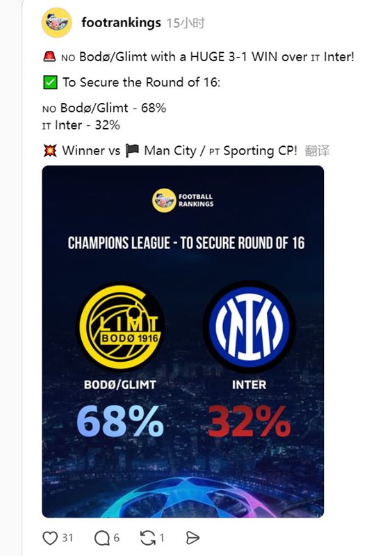 综上,博德闪耀可能不是一支综合实力超群的强队,但具有在一场比赛在爆种击溃顶级强队的神经质特性。如果曼城都可以战胜,以同样的比分再胜国米又算得了什么?