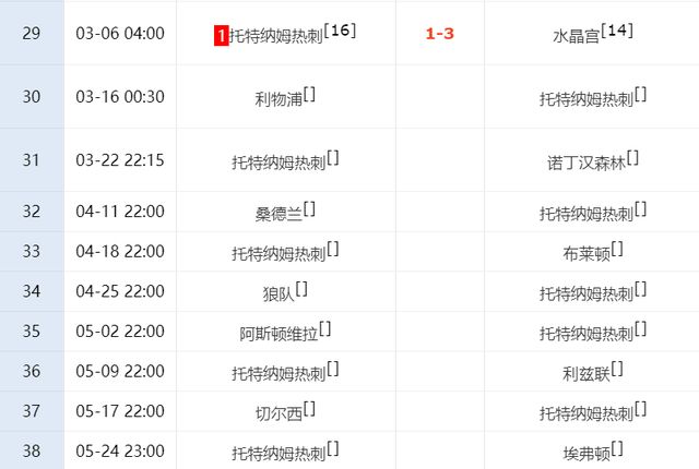 本轮比赛,西汉姆(客场1-0击败富勒姆)和诺丁汉森林(客场2-2战平曼城)都没有输球,这也让热刺的形势更加危险。此役对阵水晶宫,热刺可谓志在必得,他们必须拿到3分提升士气,可惜结果却让球迷大失所望。