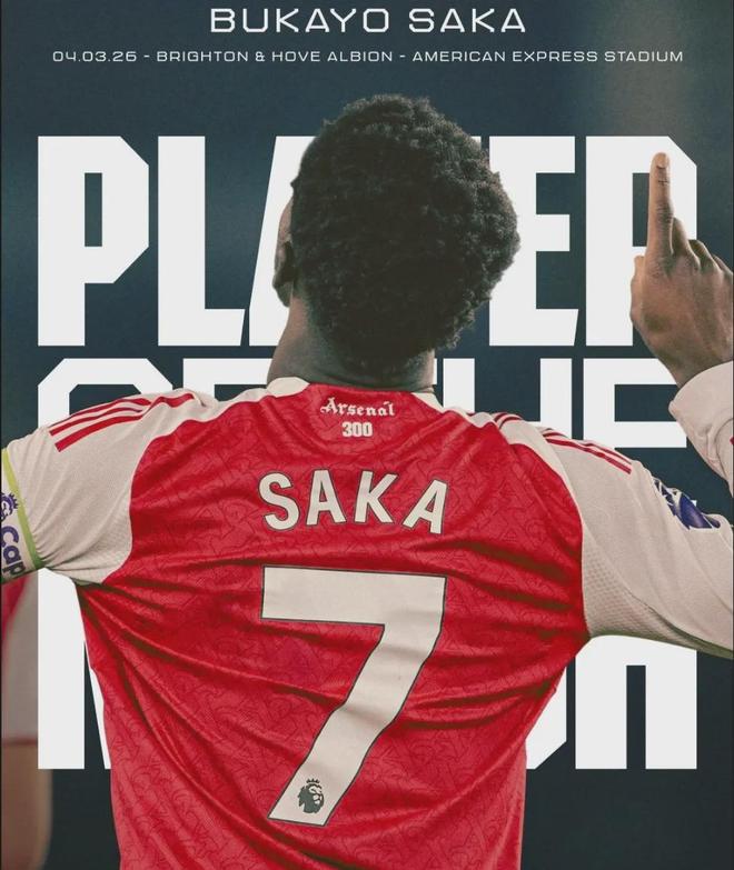 本场比赛也是萨卡代表阿森纳出战的第300场比赛。