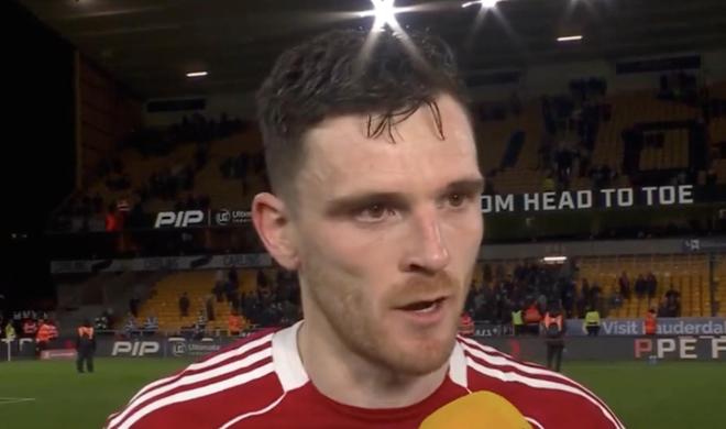 足总杯1/8决赛,利物浦客场3-1击败狼队,此役传射建功的罗伯逊赛后接受了英国媒体的采访。