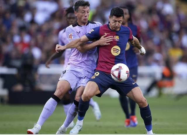 巴萨(433):霍安-加西亚/坎塞洛、库巴西、埃里克-加西亚、马丁/费尔明、伯纳尔、奥尔莫/亚马尔、莱万、拉菲尼亚