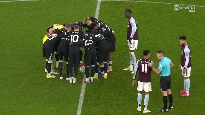 本场比赛下半场开始前,切尔西球员齐聚中圈,将球围在中间,并用脚拨弄足球并集体喊话,这一行为直接导致比赛开球时间被迫推迟。