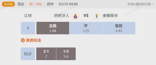 竞足 周一006西甲西班牙人VS奥维耶多