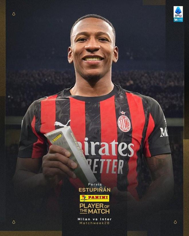 意甲第28轮迎来本赛季次回合米兰德比,最终凭借着埃斯图皮尼安的进球,米兰1-0击败了国米。这位厄瓜多尔国脚也就此被意甲官方评为本场比赛全场最佳。