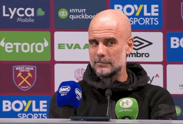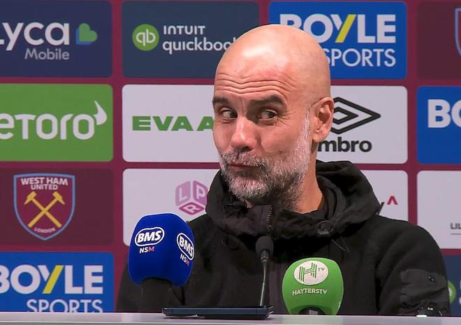 英超第30轮,曼城客场1-1战平西汉姆联,赛后,曼城主帅瓜迪奥拉出席新闻发布会接受媒体提问。