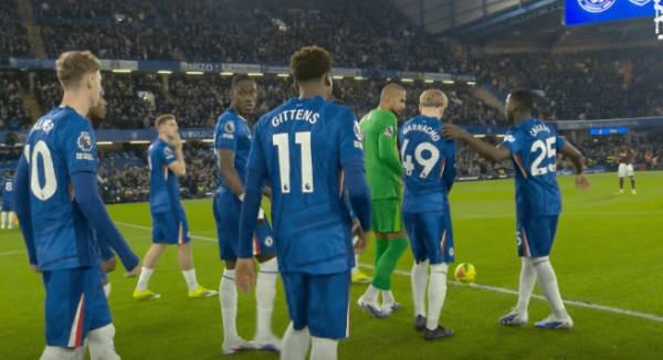 2月7日客场对阵狼队的比赛天气寒冷,切尔西球员们因此更加紧紧地围在一起,当时还下着雨,贾里德-吉列再次执法切尔西的比赛,他走到他们身边,似乎对比赛时间过长感到有些不耐烦。