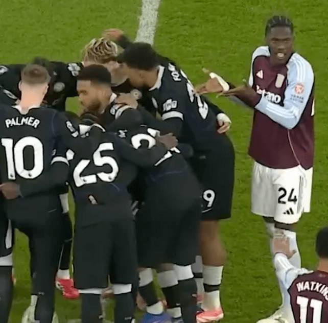 随着全队围成一圈商讨战术,维拉的阿马杜-奥纳纳既难以置信又愤怒地向吉列申诉眼前发生的一切,不得不佩服切尔西球员们成功地无视了维拉球员的抗议。