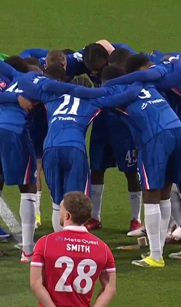 比赛开始前,11名球员在球场上围成一圈打气并不罕见,许多球队都会这样做,但最近切尔西开始尝试一种新的做法:每45分钟开始时,在不同的位置进行一次